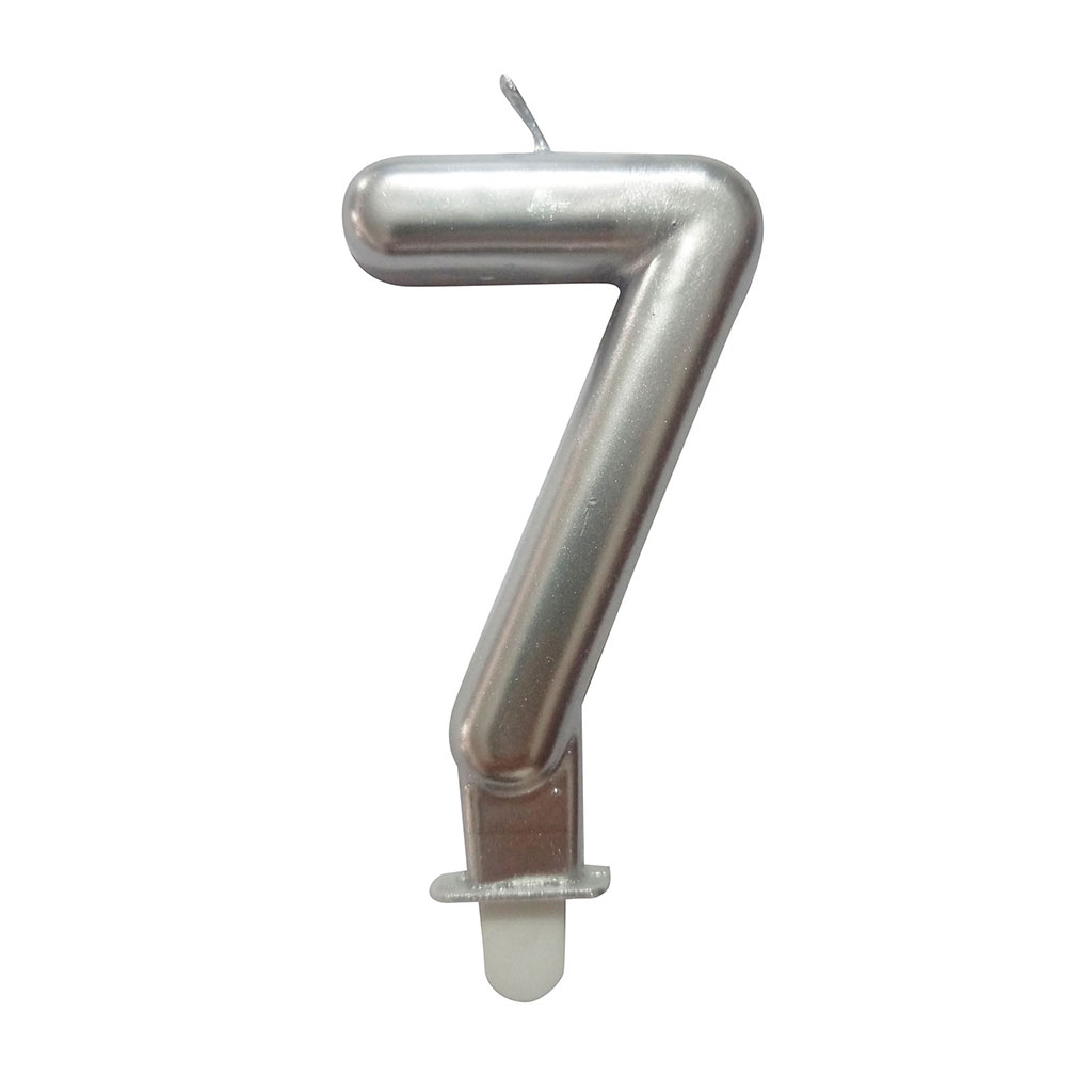 Bougie anniversaire chiffre 7 argenté H 7.5cm