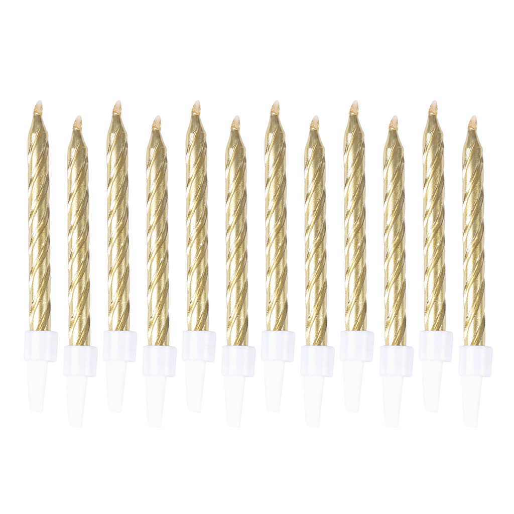 Lot de 12 bougies d'anniversaire dorées 6cm