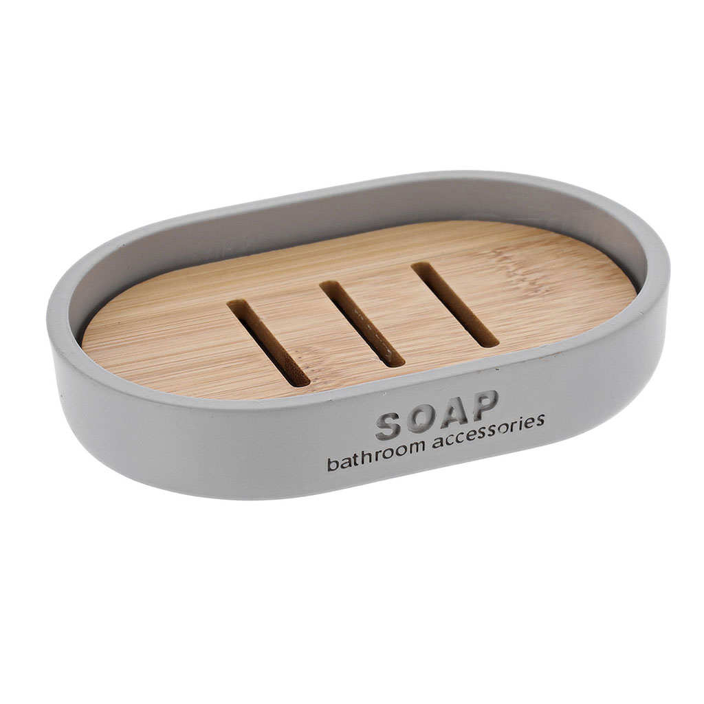 Porte-savon polyrésine gris et bambou 12.3x2.3x8.3...