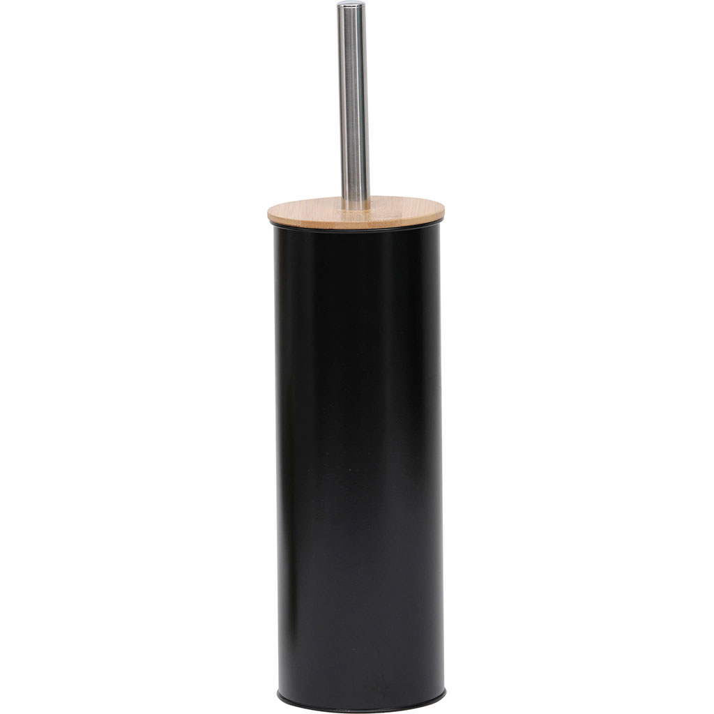 Brosse WC métal couvercle rabattable noir 11x38.5c...