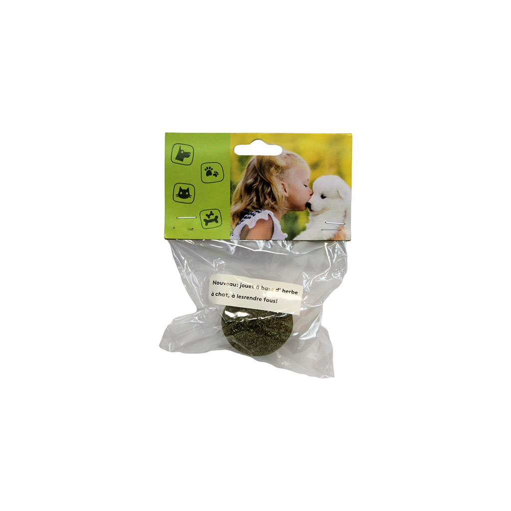 Cette balle fabriquée avec de l'herbe compressées stimulera et incitera votre chat à jouer.