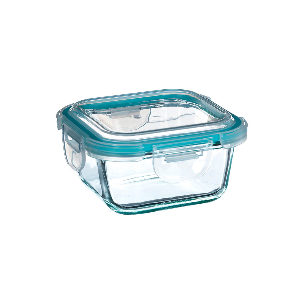 Cette boite de conservation alimentaire en verre dispose d'un couvercle hermétique à clapet pour éviter les fuites.