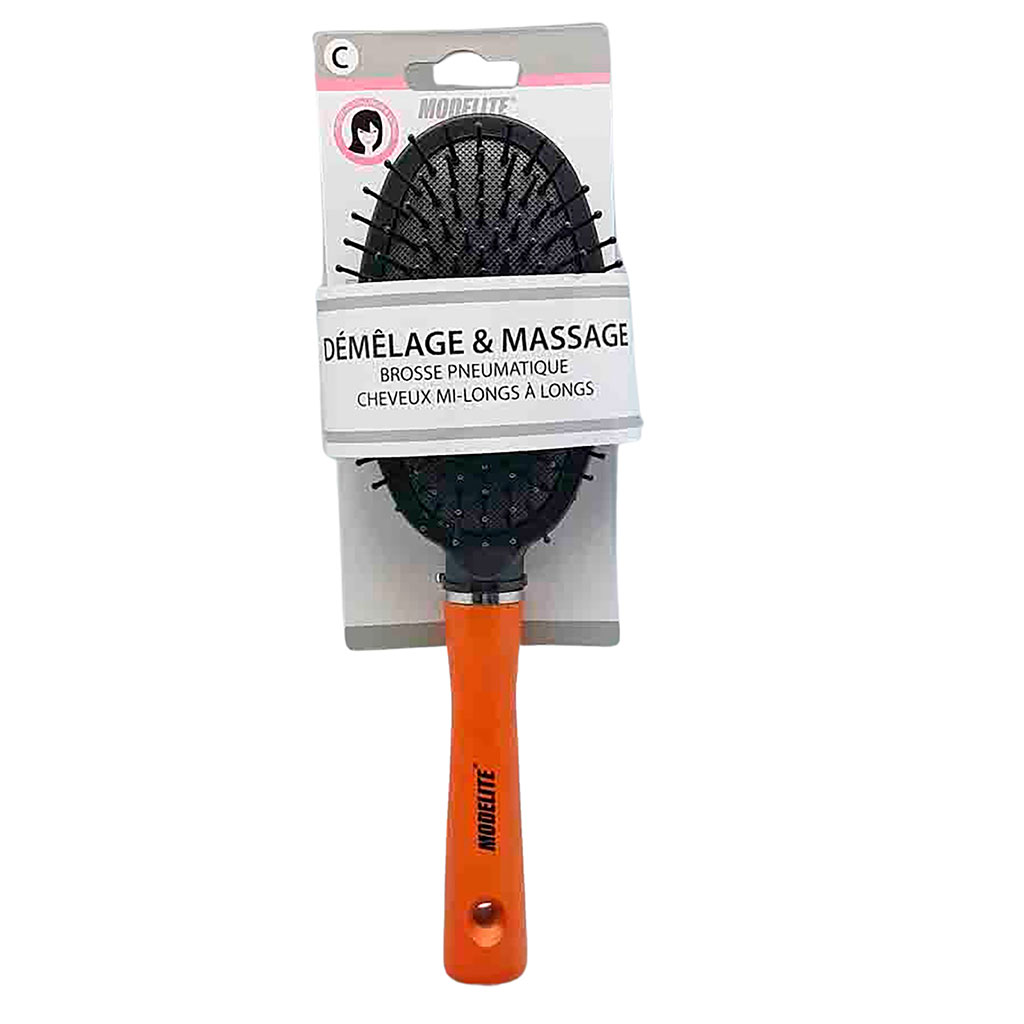 Cette brosse pneumatique ovale à manche bois démêle vos cheveux et vous masse le cuir chevelu tout en douceur.
