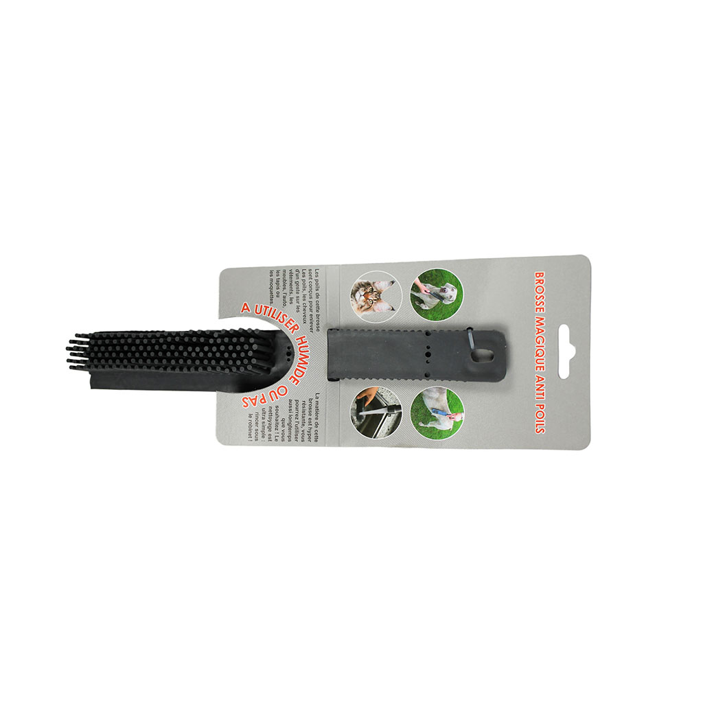 Cette brosse anti poils vous permettra de peigner votre chien ou chat tout en enlevant les saletés et le surplus de poils.