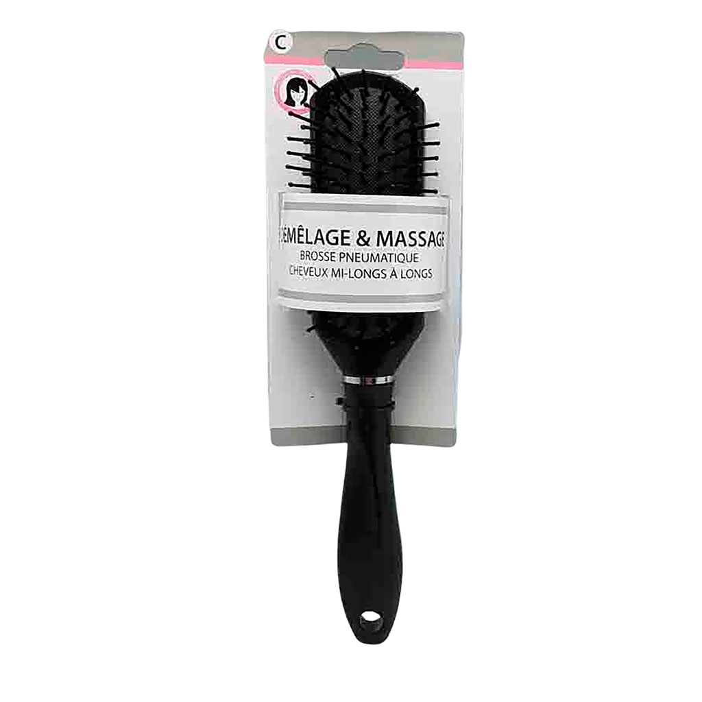 Cette brosse pneumatique rectangulaire démêle vos cheveux et vous masse le cuir chevelu tout en douceur.