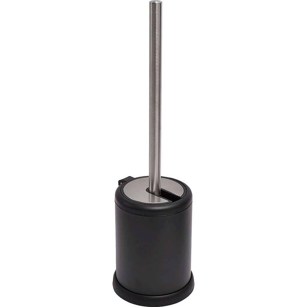 Brosse WC métal couvercle rabattable noir 11x38.5cm