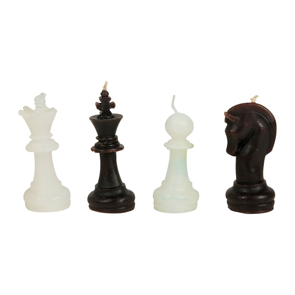 Les amateurs du jeu d'échec vont craquer pour ce lot de 4 bougies en forme de pièces à jouer.