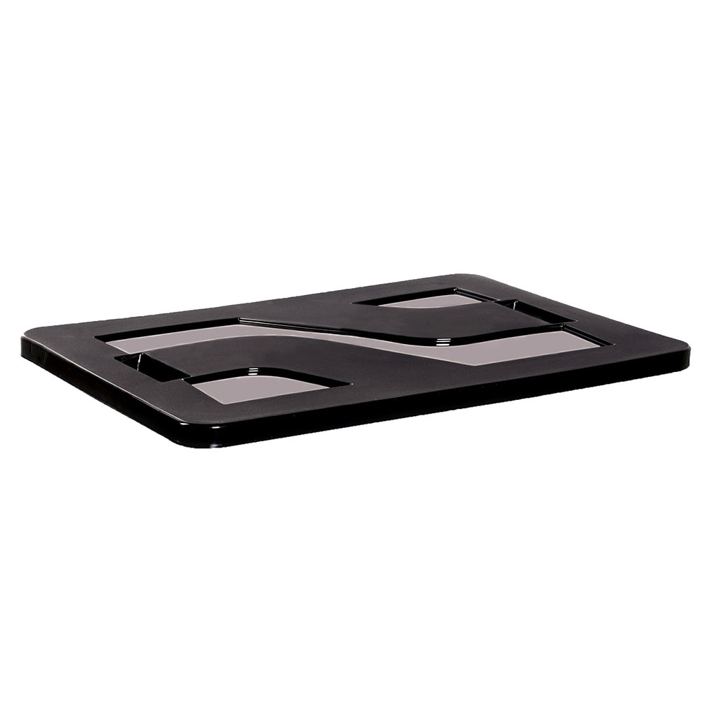 Ce couvercle en plastique noir est conçu pour s'adapter à un bac de manutention de 50L.