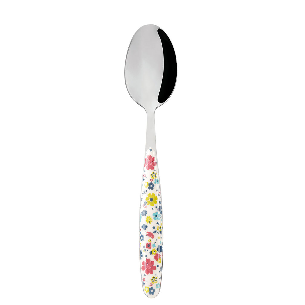 Cette cuillère à soupe dispose d'un manche avec un motif fleuri style Liberty.