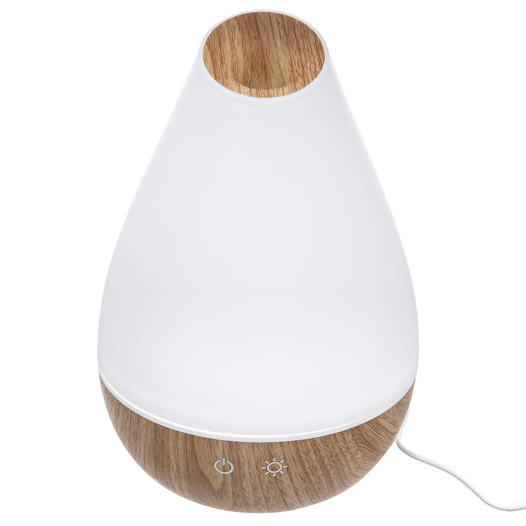 Diffuseur brumisateur d'huiles essentielles lumineux blanc et bois H 22.5cm