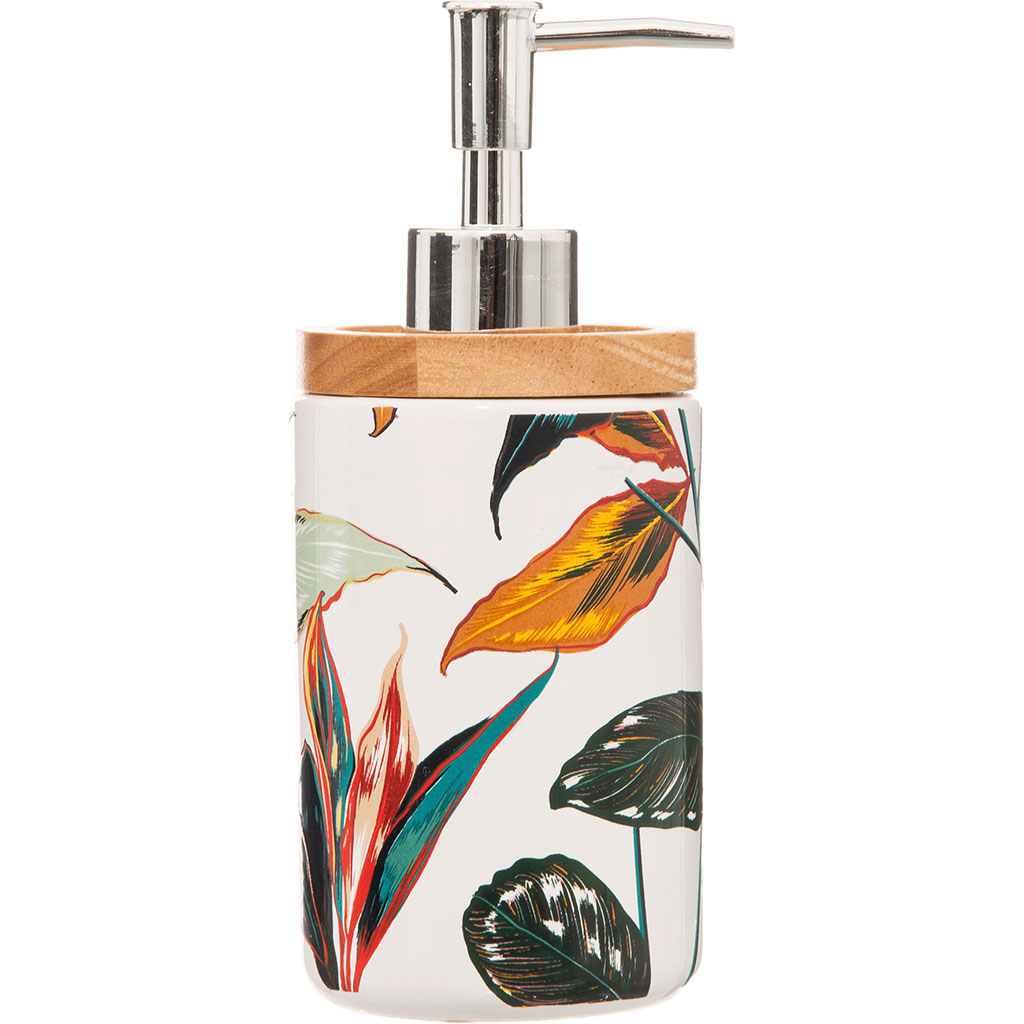 Craquez pour ce distributeur de savon en grès et son motif exotique !