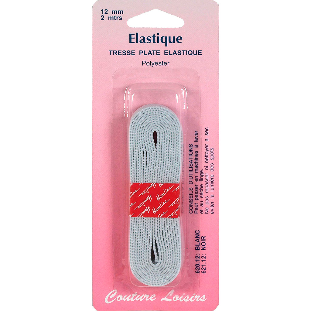 Elastique tissé souple blanc 12mmx2m