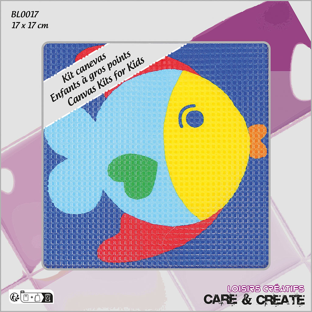 Le kit contient 1 toile imprimé, 1 aiguille en plastique à bout rond, des fils de laine et 1 guide d'instruction.