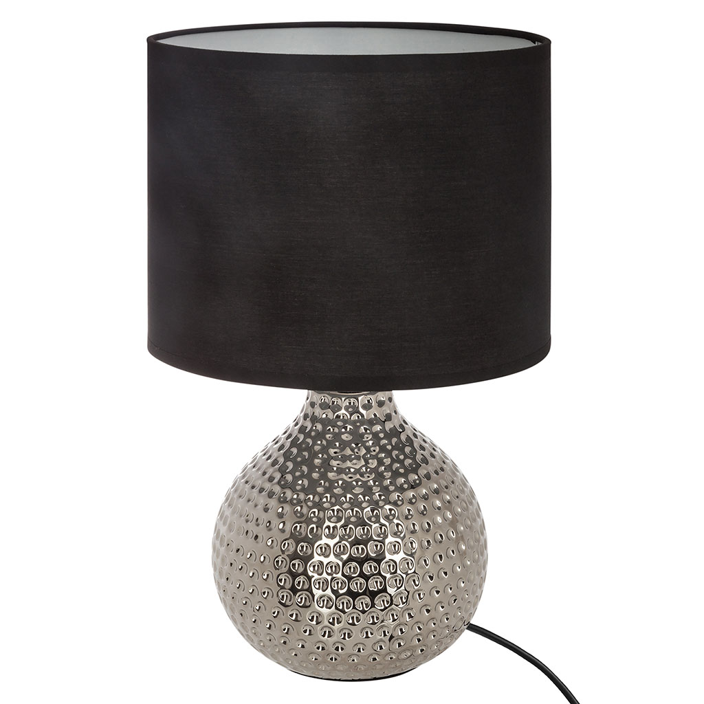 Cette lampe apportera un charme à votre intérieur, avec sa céramique argentée effet goutte, et sa petite touche de noir sur l'abat-jour.