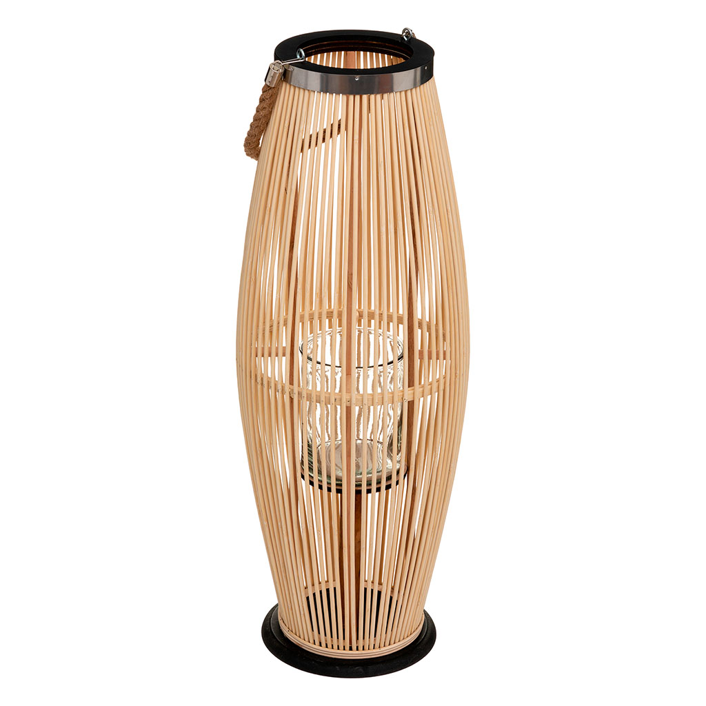 Cette lanterne effet bois est idéale pour une décoration naturelle et ethnique.