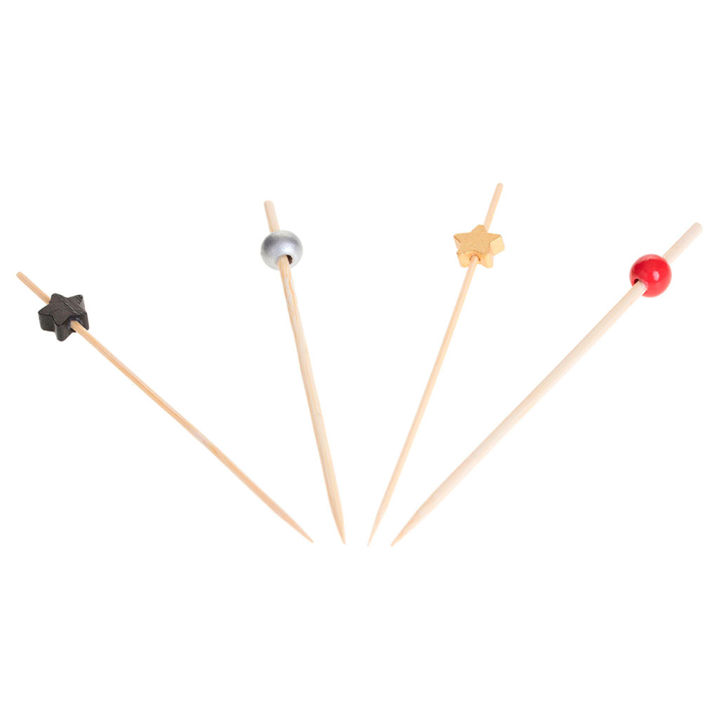 Lot de 100 piques à cocktails ou apéritifs en bambou avec perle décorative.
