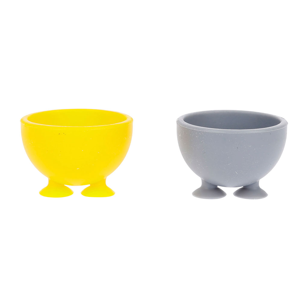 Pratique, chaque coquetier dispose de pieds ventouse pour afin de le fixer à l'assiette et éviter de les renverser.