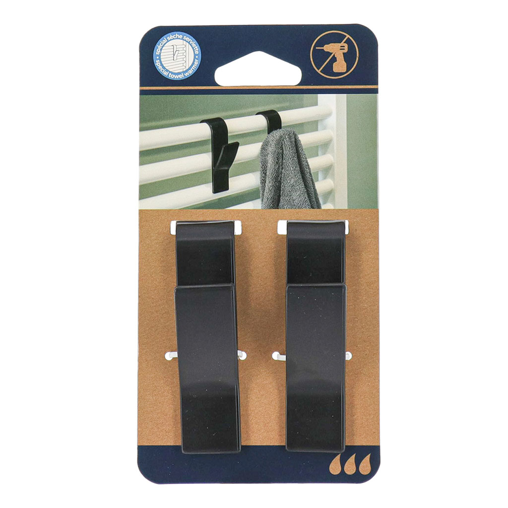 Accrochez vos serviettes en toute simplicité avec ce lot de 2 crochets noirs.