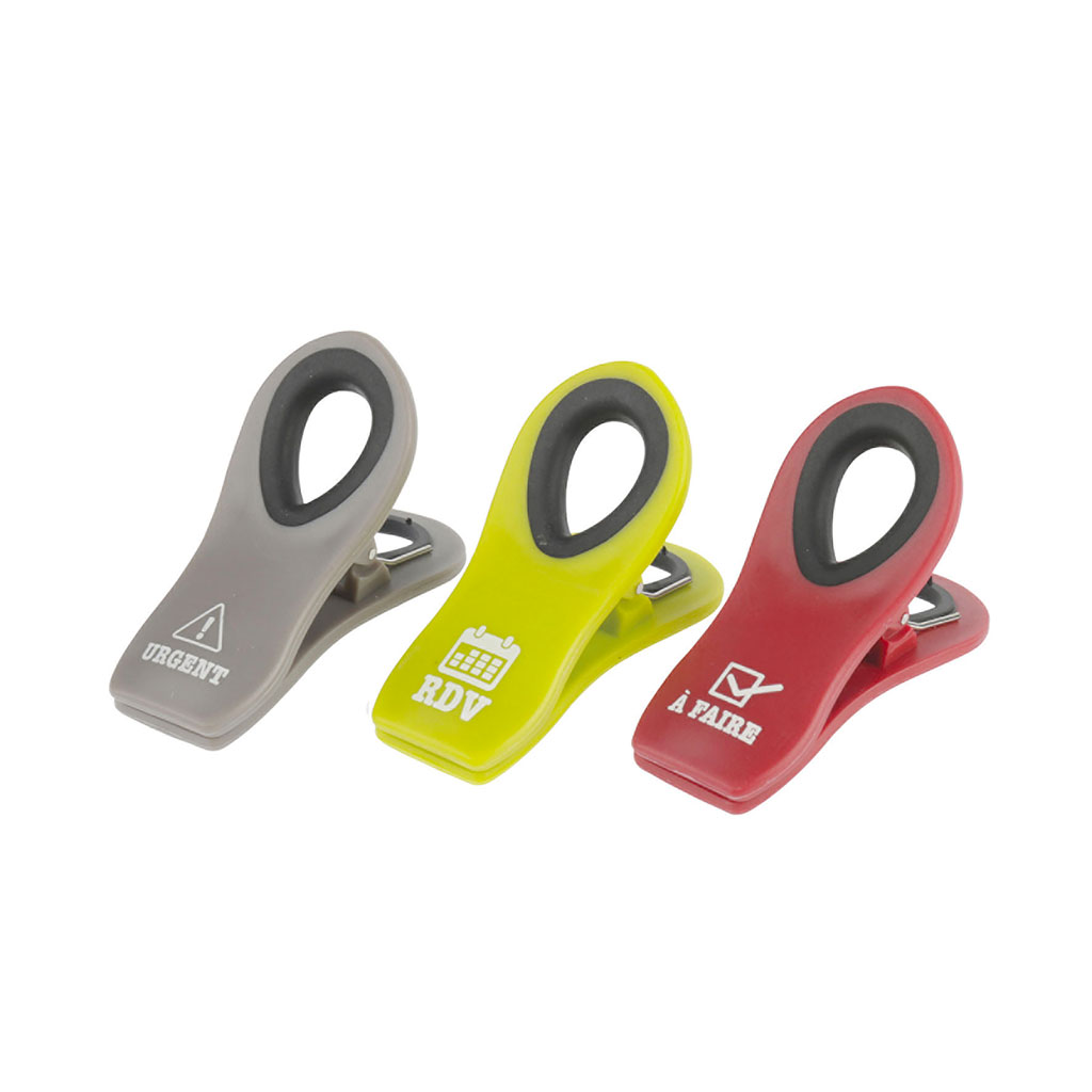 Lot de 3 pinces magnétiques qui vous permettront d'afficher sur votre frigo ou sur une surface métallique les tâches à effectuer.