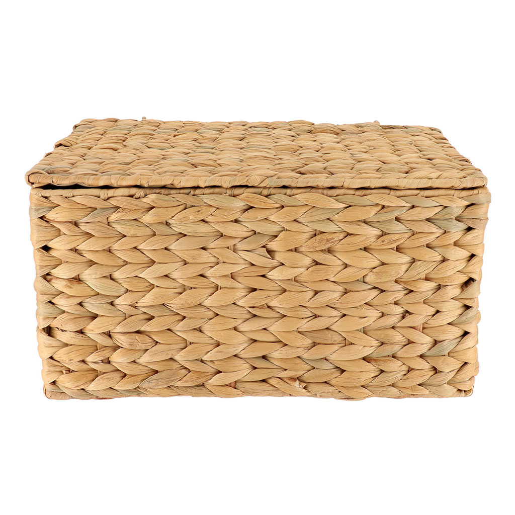 Apportez une touche naturelle à votre intérieur avec cette malle de rangement en jacinthe tressée.