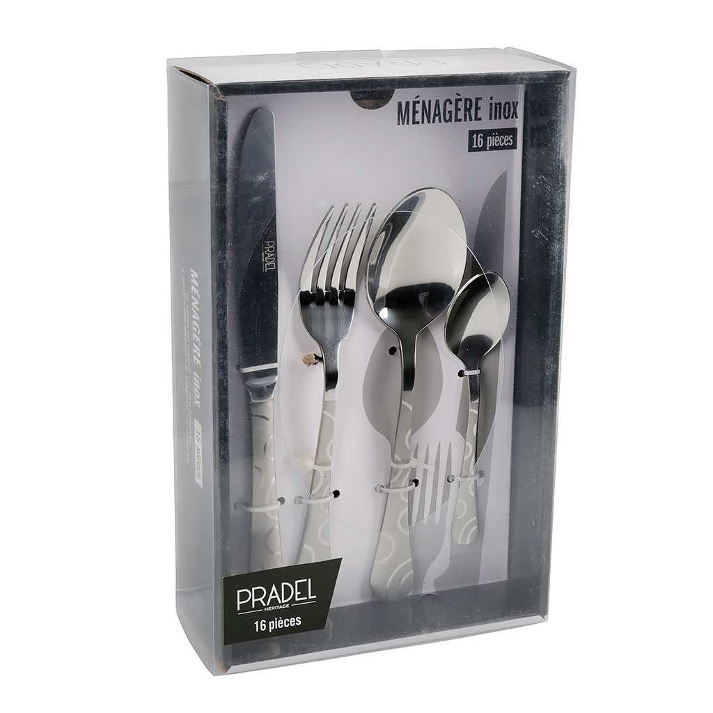 Une ménagère de couverts en inox de la marque Pradel Héritage.