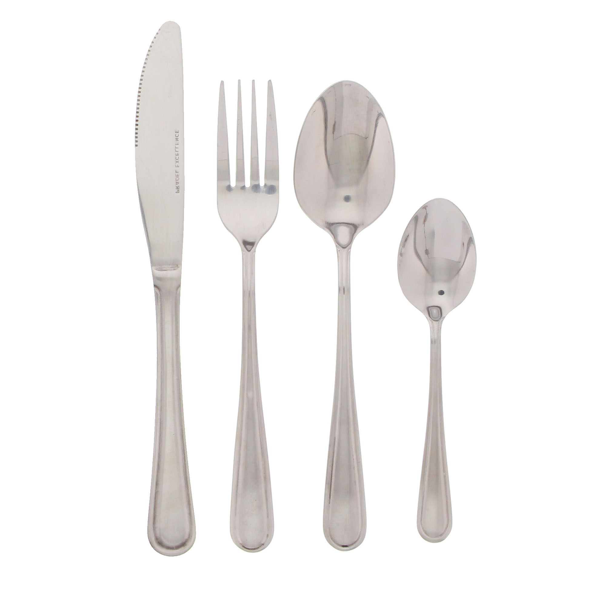 Cette ménagère est composée de 16 couverts de table dont 4 couteaux, 4 fourchettes, 4 cuillères à soupe et 4 cuillères à café.