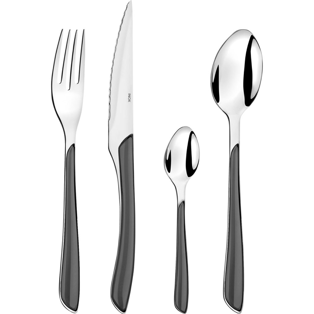 Elle est composée de 24 couverts : 6 couteaux de table, 6 fourchettes, 6 cuillères à soupe et 6 cuillères à café