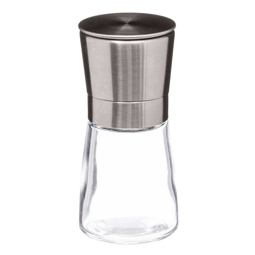 Moudrez vos épices ou poivres grâce à ce moulin a épices en verre et inox.