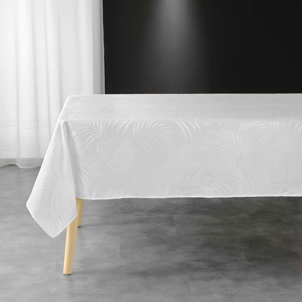Cette nappe rectangulaire blanche au délicat motif protègera votre table tout en la décorant.