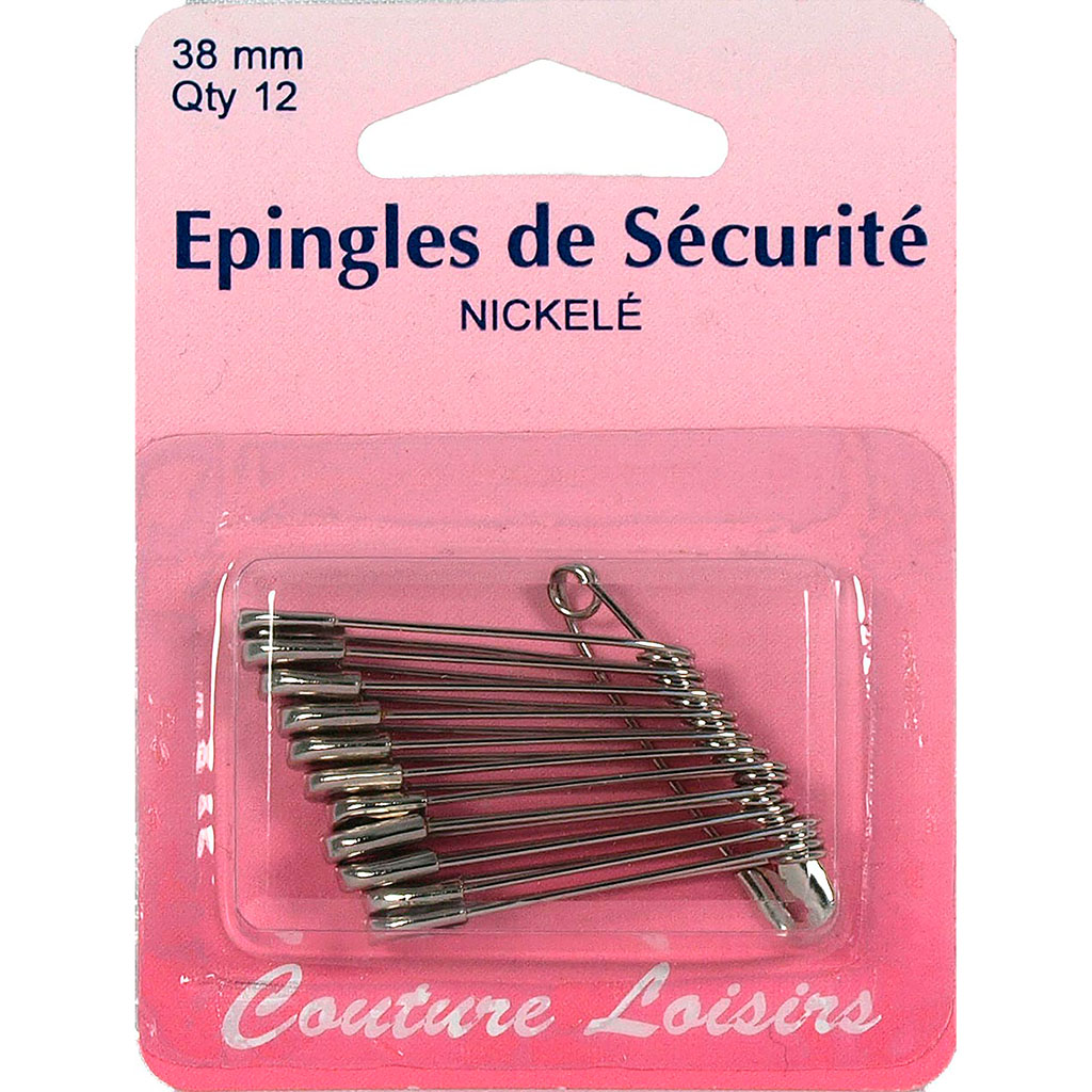 Lot de 12 épingles de sécurité nickelées 33mm