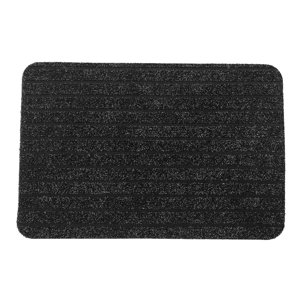 Ce paillasson dispose d'un dessin à rayures et d'un revêtement anti dérapant.