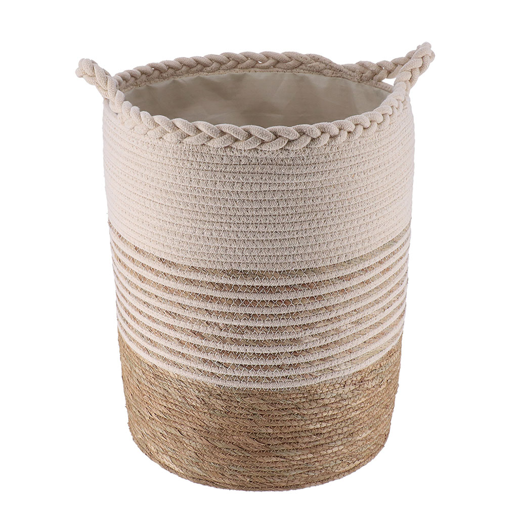 Craquez pour le charme naturel de ce panier à linge tressé beige.