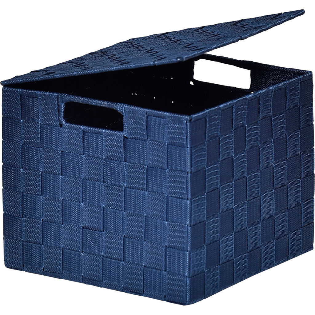 Panier de rangement carré polyester bleu marine 24x20x24cm