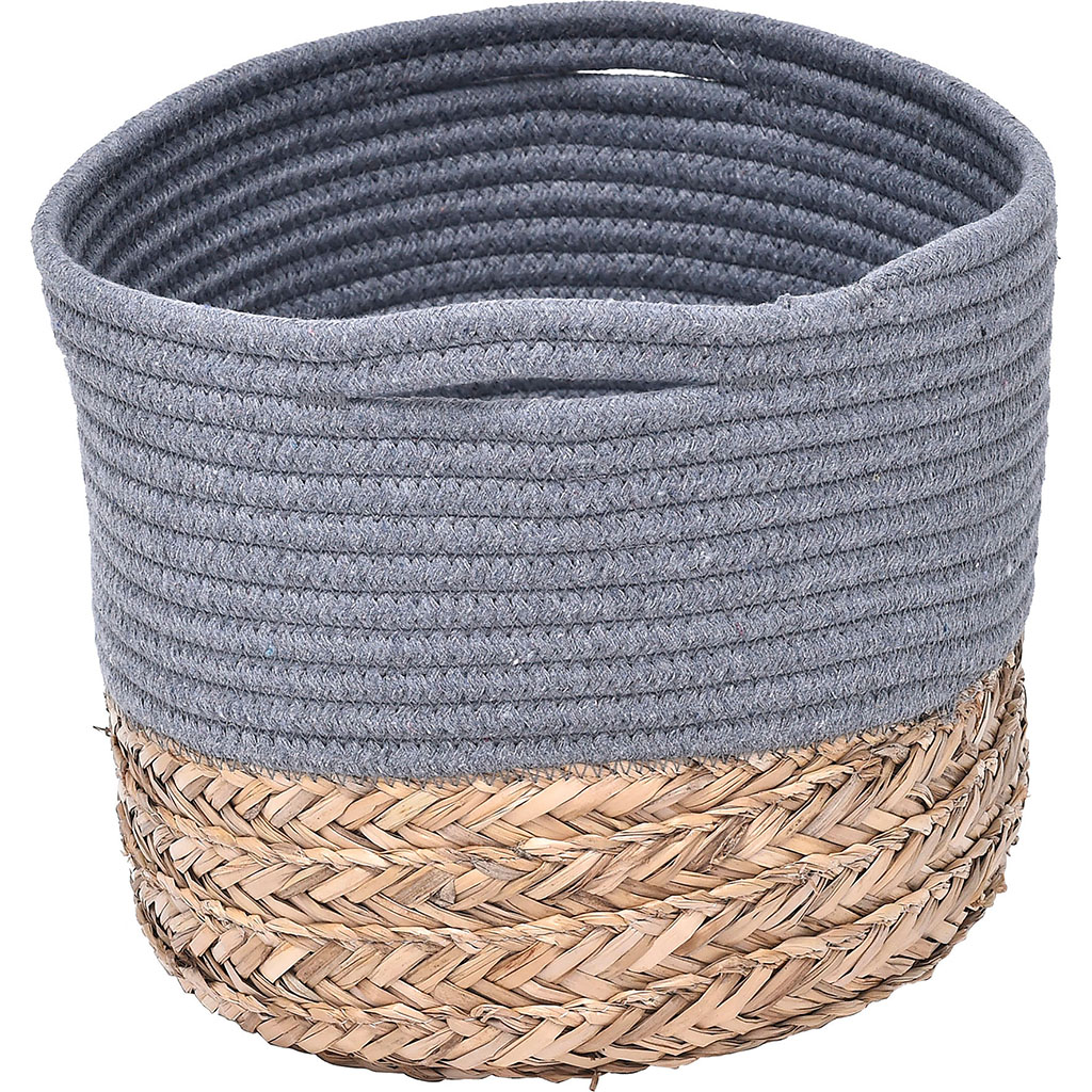 Un joli panier bi-matière en coton gris et matière végétale, parfait pour ranger vos accessoires du quotidien.