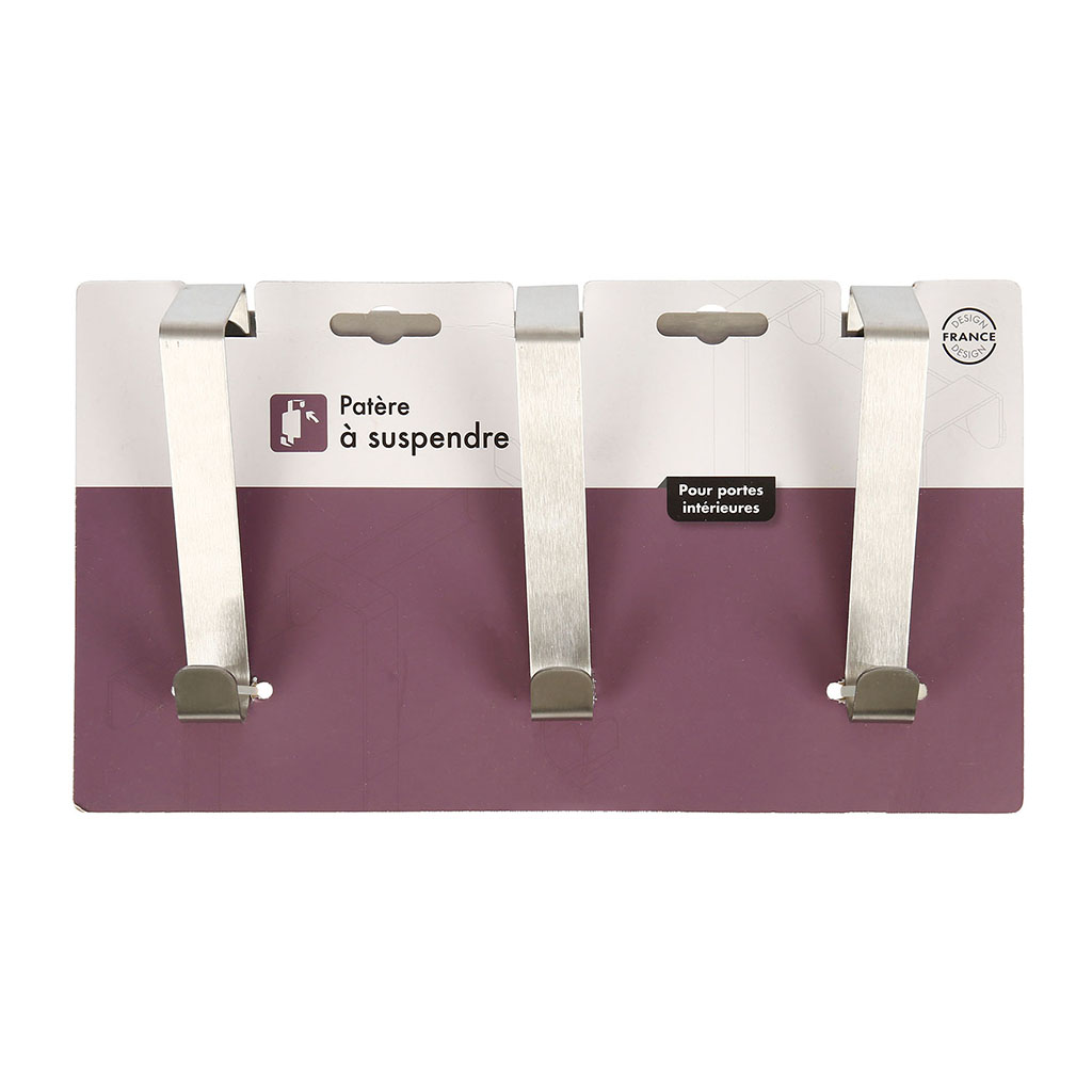 Cette patère 3 crochets en inox se fixe à une porte intérieure.
