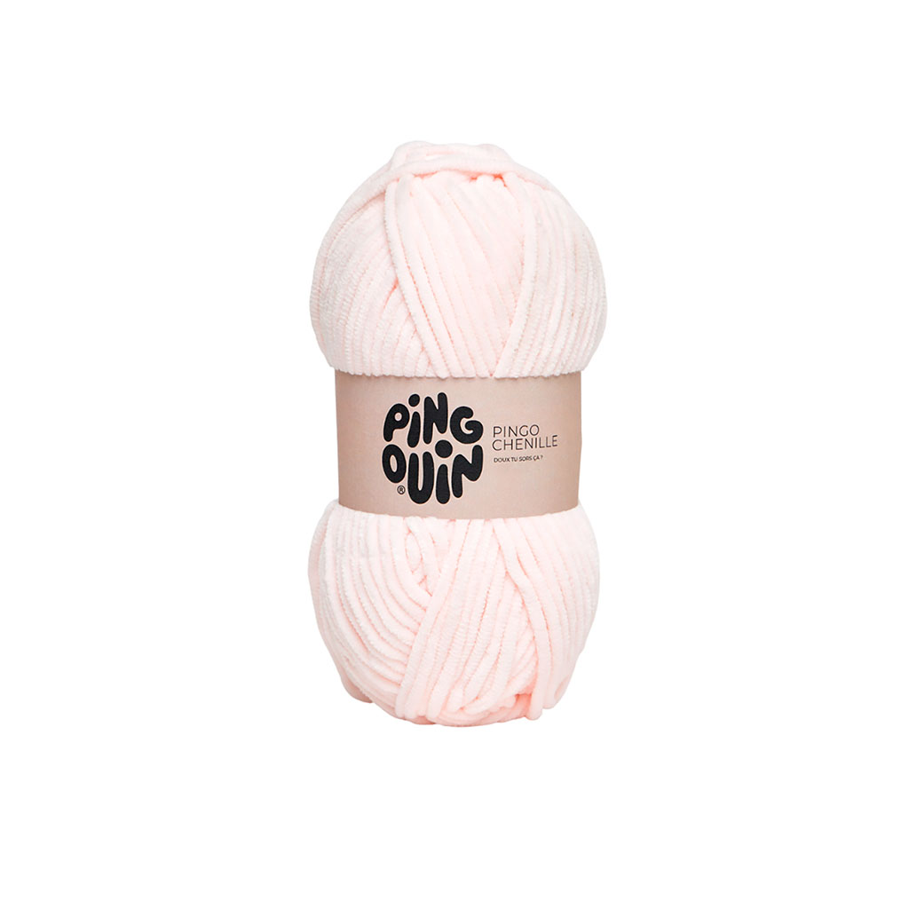 Pelote de laine chenille rose poudré 100g - PINGOUIN