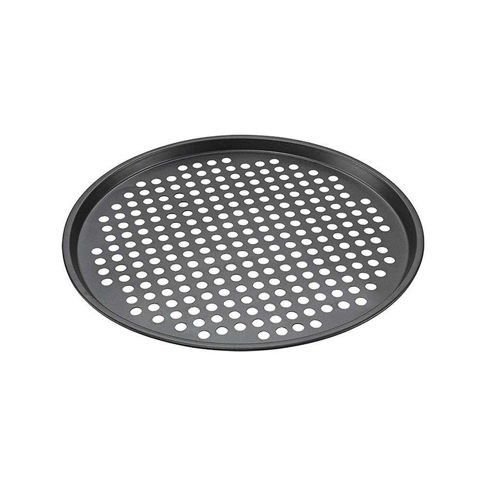 Cette plaque à pizza en métal est idéale pour une cuisson uniforme de vos pizzas maison.