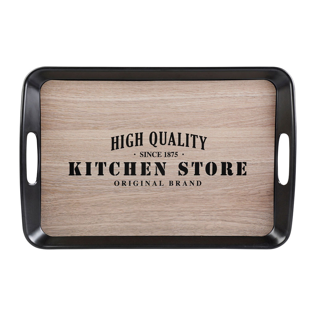 Ce joli plateau motif bois est pratique et fonctionnel.