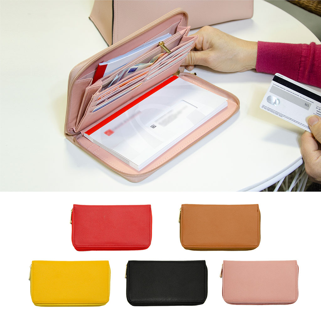 Ce porte chéquier est très complet et dispose de nombreux rangements : cartes (6 emplacements CB), chéquier, monnaie ainsi que des papiers (2 soufflets avec une poche porte-monnaie zippée).