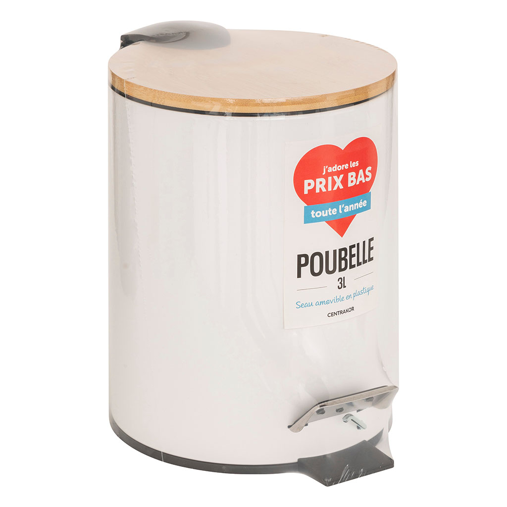 Avec son couvercle en bois, cette petite poubelle de 3L sera idéale pour une salle de bain ou la pièce de votre choix.