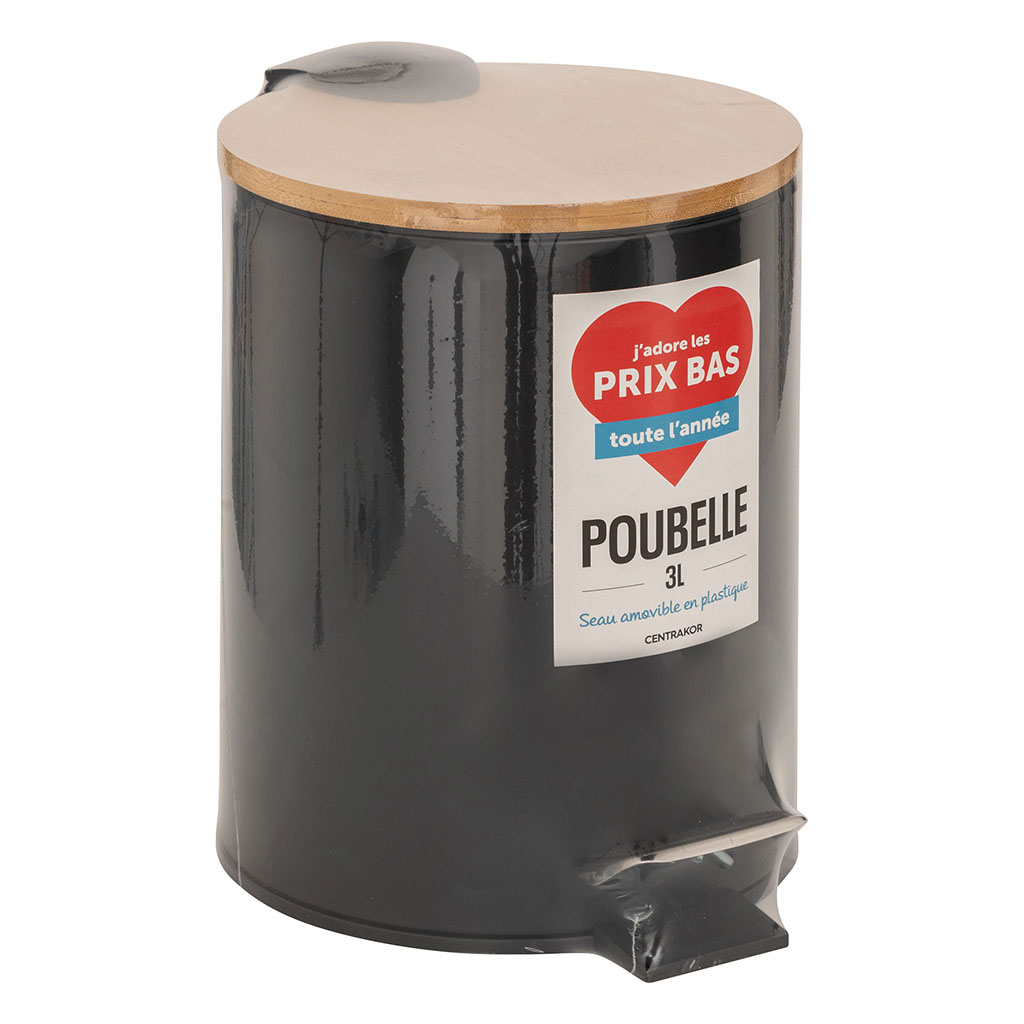 Avec son couvercle en bois, cette petite poubelle de 3L sera idéale pour une salle de bain ou la pièce de votre choix.