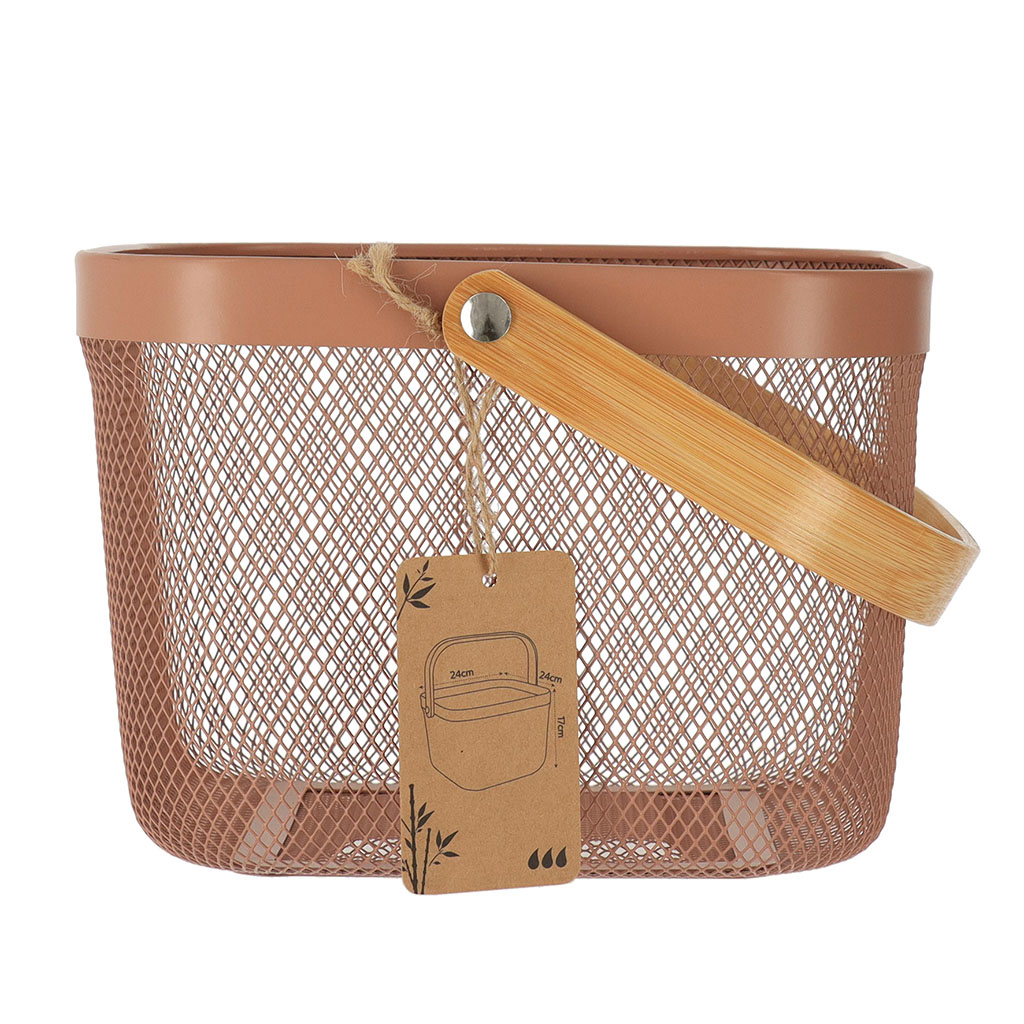 Panier de rangement grille métal anse bambou caram...