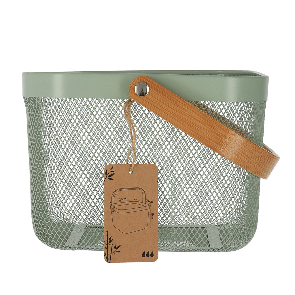 Panier rangement grille métal anse bambou kaki