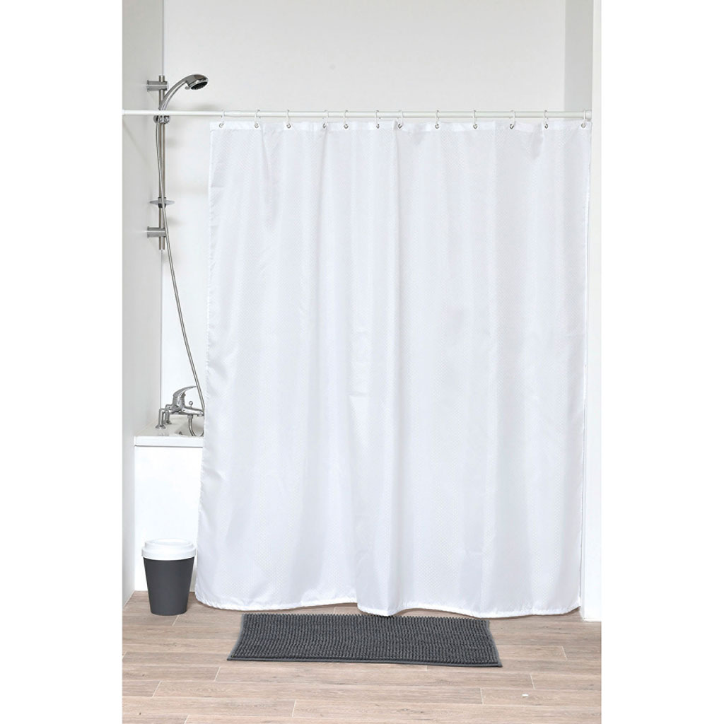 Ce rideau de douche uni vous permettra de prendre votre douche confortablement en protégeant votre salle de bain d'éventuelles éclaboussures. Anneaux non fournis.