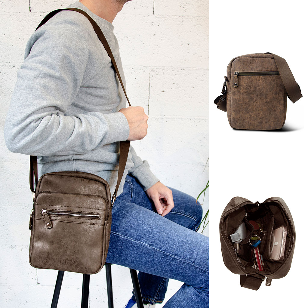 Sacoche homme avec bandoulière réglable pour porté épaule et porté croisé.