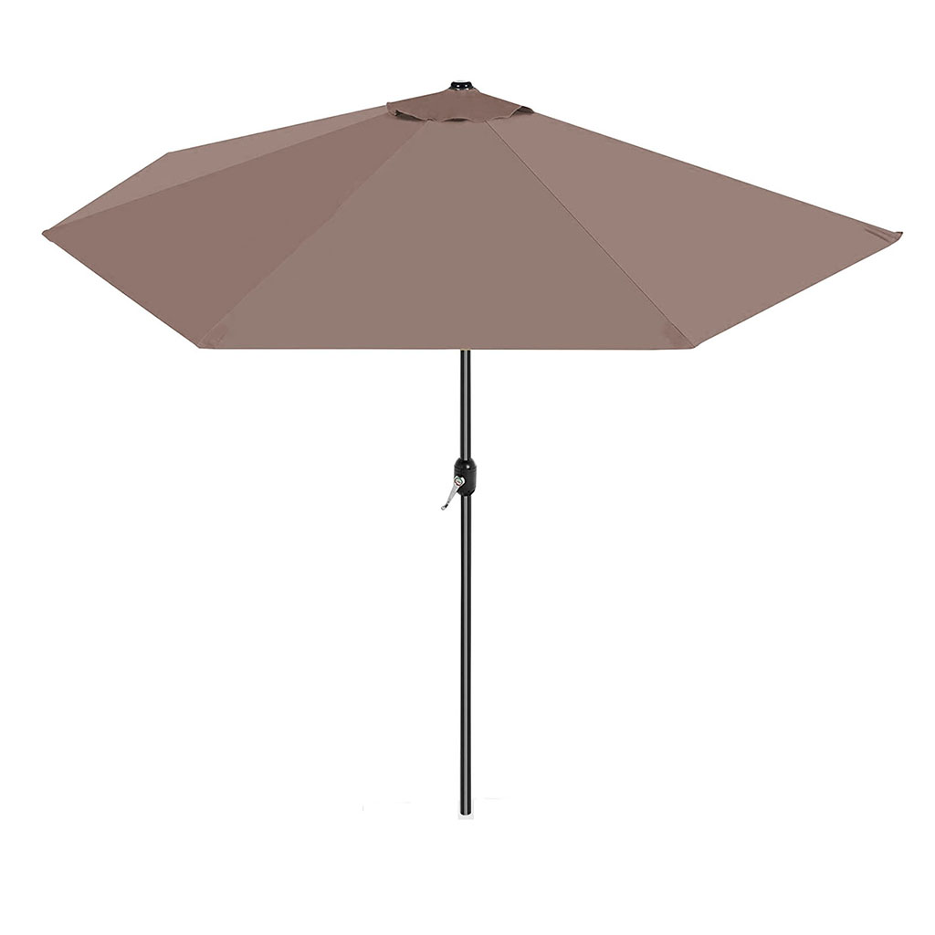 Parasol droit inclinable rond rayé taupe et blanc 2m