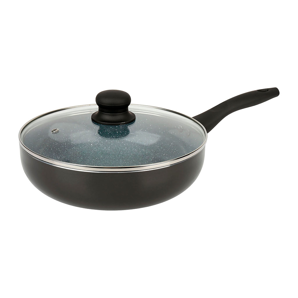 Cette sauteuse en aluminium pressé possède un revêtement intérieur à base de céramique effet pierre.