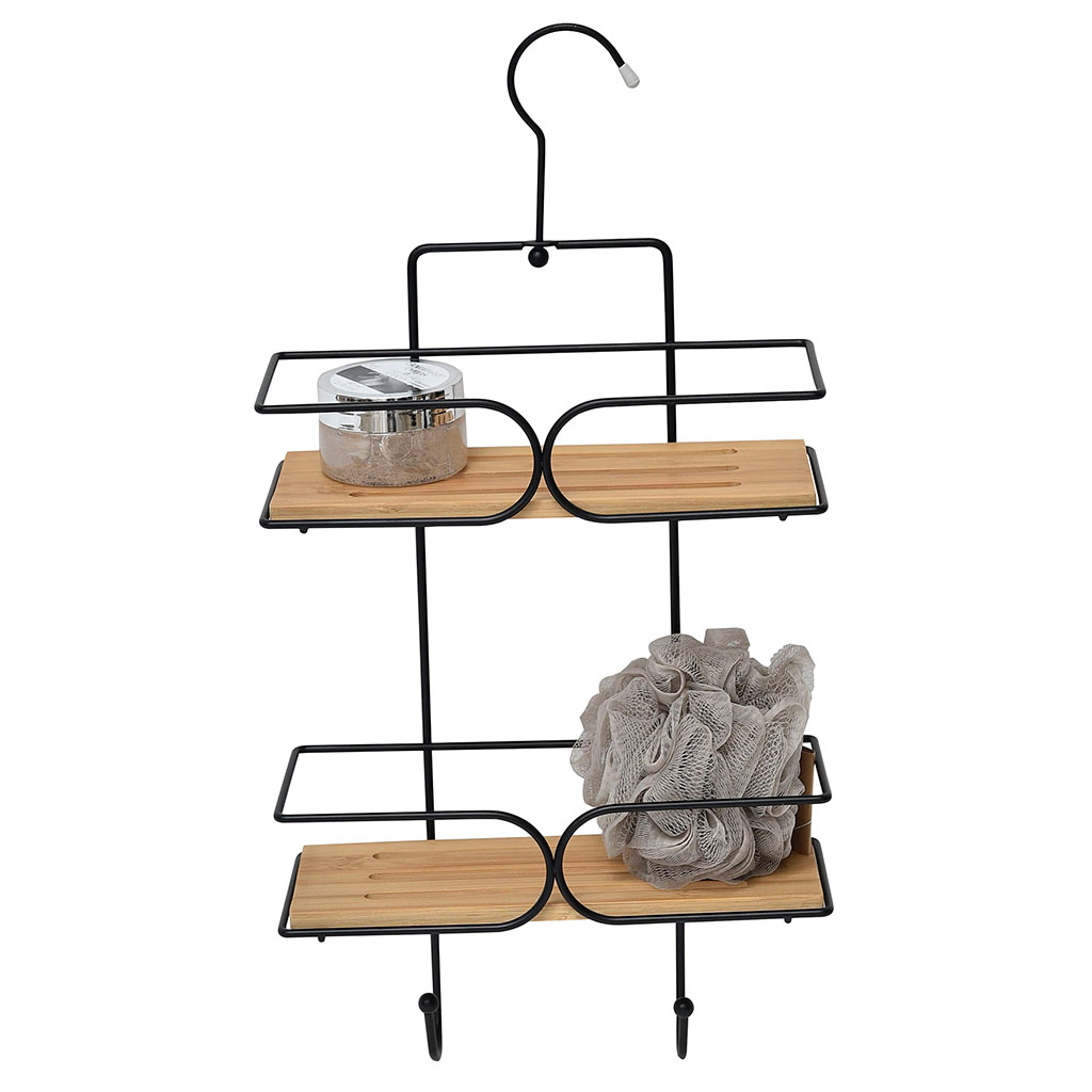 Ce serviteur de douche métal et bambou deviendra indispensable dans votre salle de bain pour ranger vos produits de beauté.