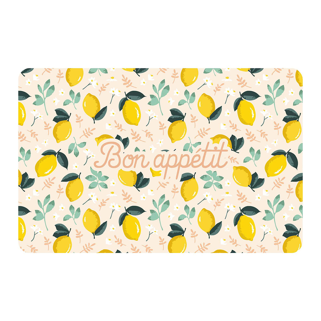 Ce set de table "bon appétit" au style estival avec des citrons s'accordera avec toutes vos tables estivales.