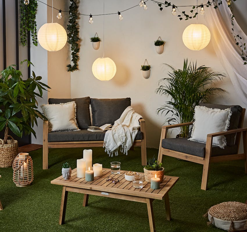 Des coussins aux lanternes en passant par les tapis et les guirlandes lumineuses, créez une ambiance chaleureuse et conviviale pour profiter pleinement de vos moments en plein air.